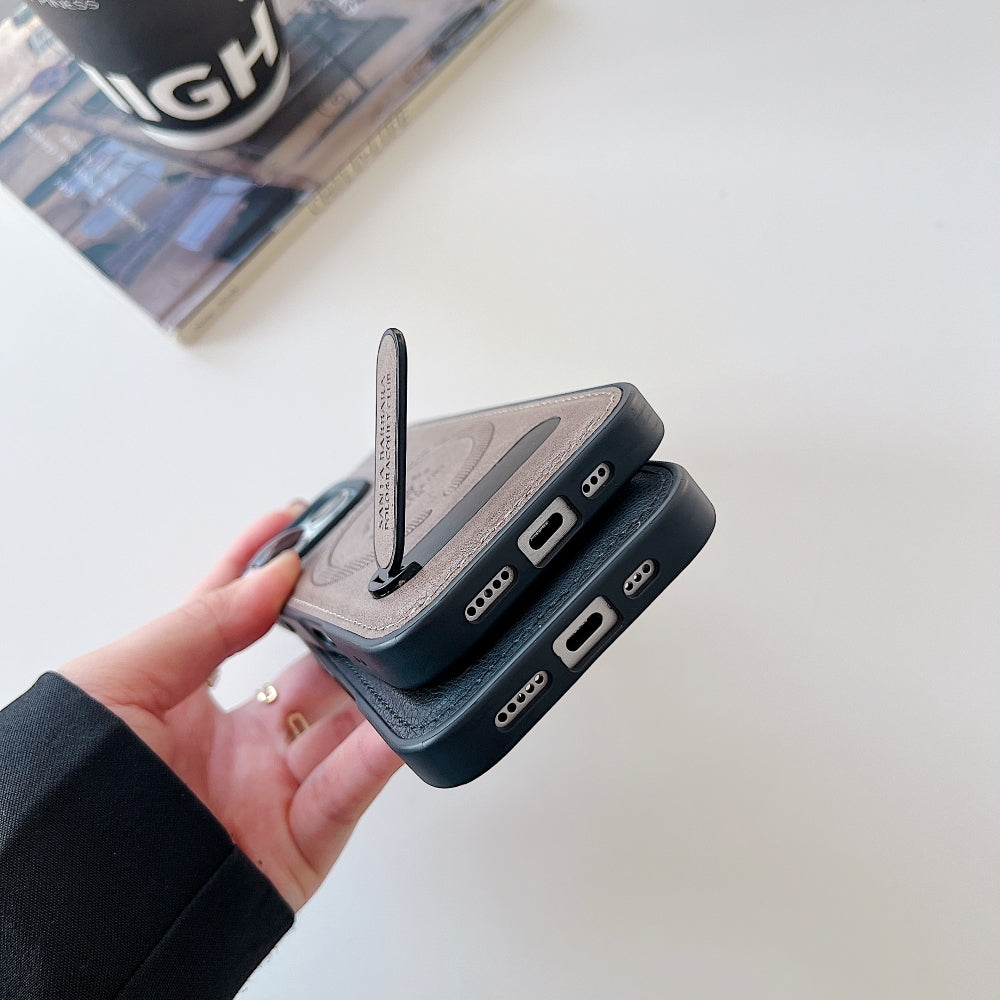 Wireless Charging PU Leather Rugged Kickstand Phone Case - iPhone 16 Pro