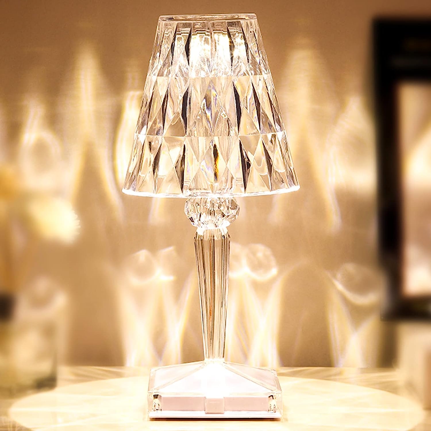 Crystal Table Lamp Romantic Bedside Lamp- Our touching control rose crystal lamp is made of delicate and transparent acrylic material and the cut surface is shaped like a lampshade diamond,crystal table lamp for bedroom or living room bringing a charming lighting effect, adding a romantic atmosphere